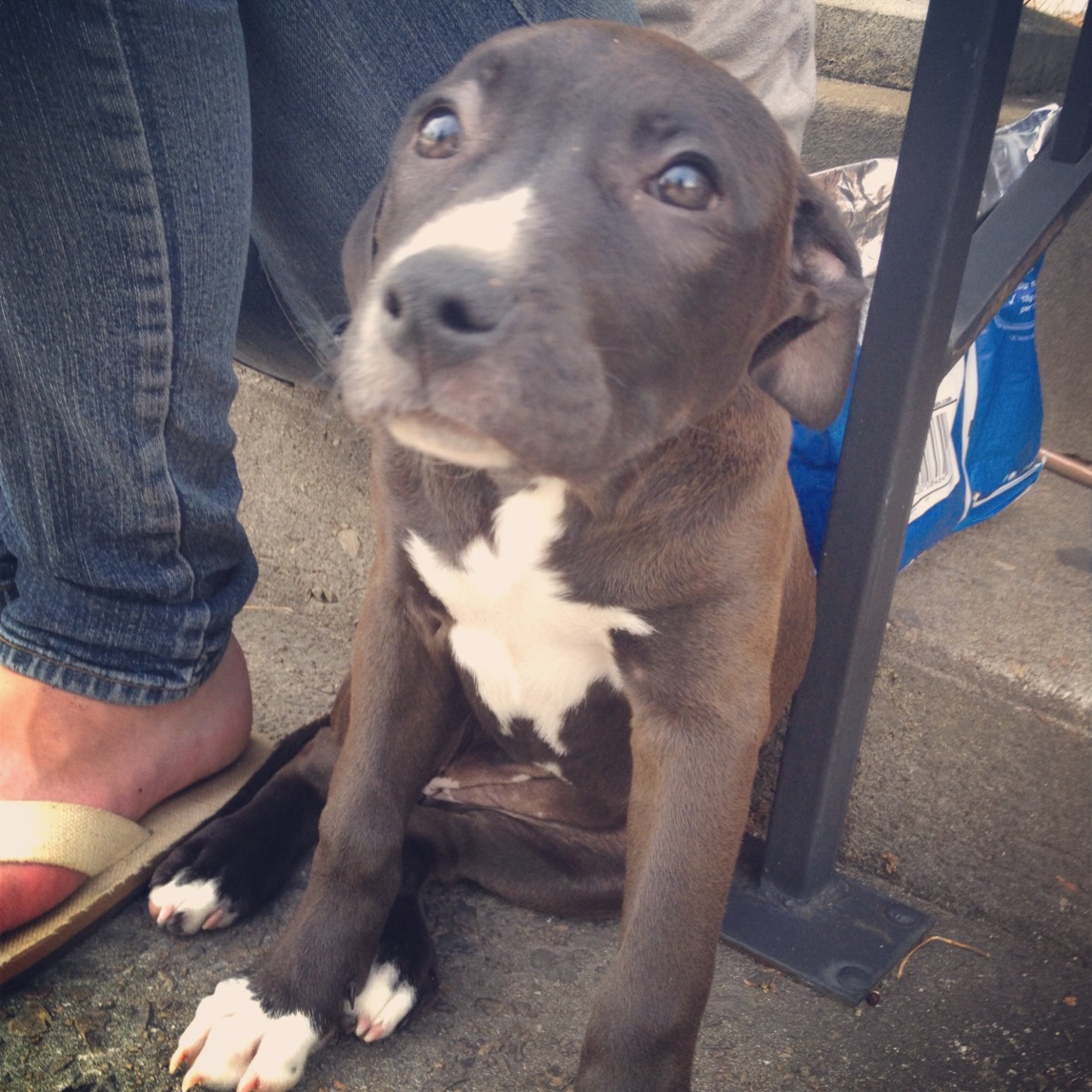 “Someone has to take care of her,” they begged. Finally at the end of the night the pitbull puppy ended up in the car with me.