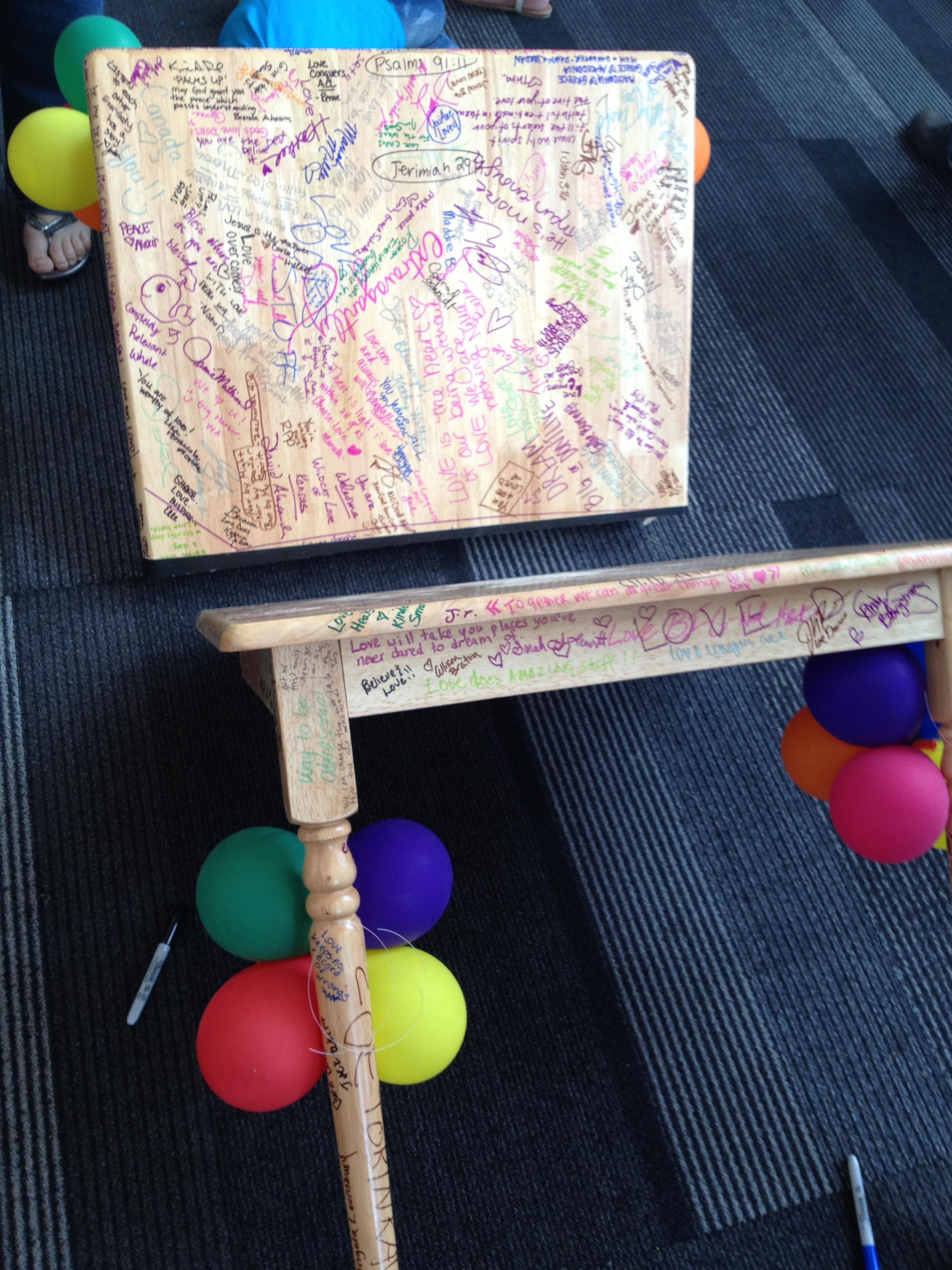 - Anyone can solve a conflict between two countries. In the conference center lobby were a half dozen tables with Sharpies on top (and balloons, of course). Guests were instructed to sign the table and leave a message of love. Bob later explained that each of these tables would be cut in half. Each half would be given to an influential world changer, including world leaders from countries feuding with each other. Bob can do that – he just happens to be the United Nations consulate for Uganda. The message was that love doesn’t ask just ask people to come to the people – love tells people they are welcome at the table.