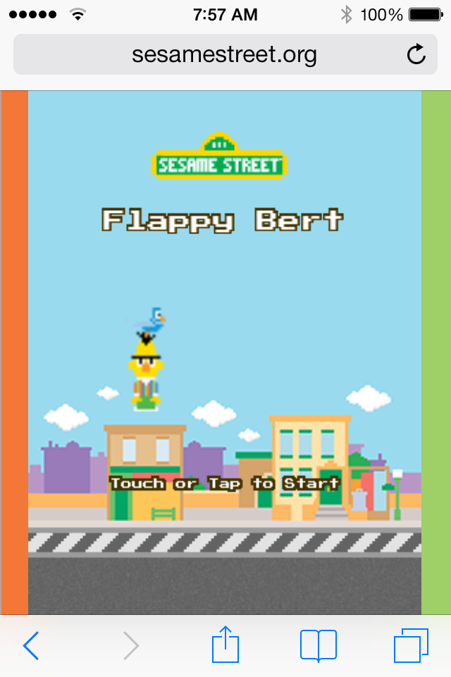 People started to go a little crazy. iPhones with Flappy Bird already downloaded were flying off eBay for thousands of dollars (although the site eventually shut down any such auctions). Imitations sprung up to satiate frenzied fanatics; my favorite was the Sesame Street-inspired Flappy Bert.